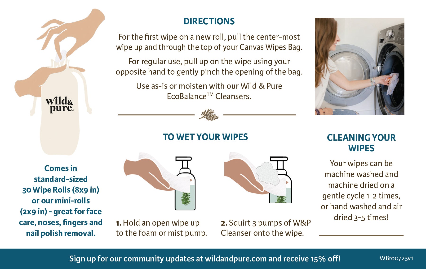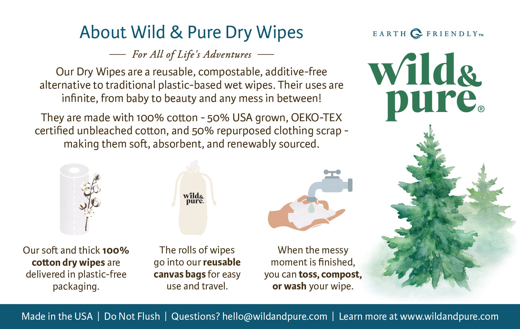 - Four (4) Rolls of Wild & Pure Roll Dry Wipes